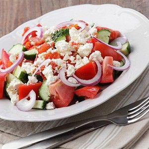 Салат "Шопський": Соковиті томати, хрусткі огірки, ароматна бринзя та перец у неперевершеному танці свіжості та традицій.