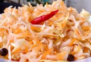Квасна капуста власного виробництва — аутентичний домашній смак, де квасний смак і кисло-солодкий баланс створюють неперевершений гастрономічний досвід.